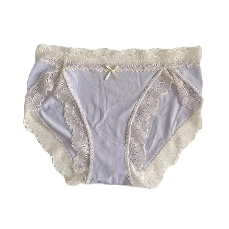 Japanese Modal Panties Women’s Mid-waist Lace Edge Cotton Stop Panties Comfortable Breathable Student Underwear