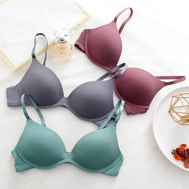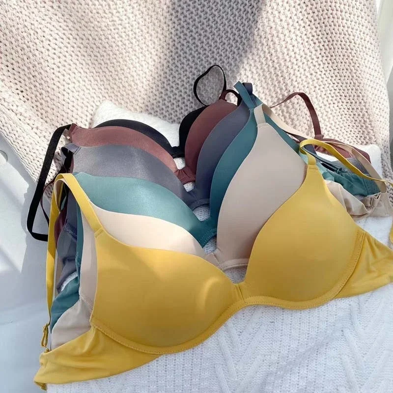 Japanese One-piece Smooth Ladies Seamless Small Push Up Bra Thin Cup Without Underwire Sleep Bra 3/4 Cup Bralette Top Brassiere
