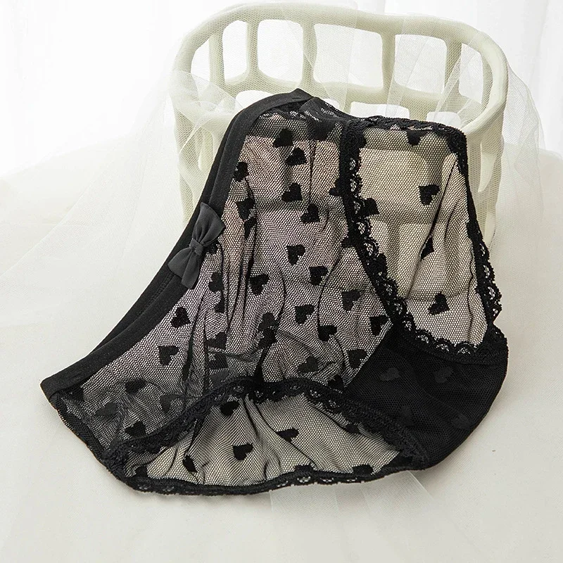 Japanese Sweet Women Thin Mesh Briefs Underwear Summer Bow Heart Transparent Panties For Girls Cotton Crotch Breathable Lingerie