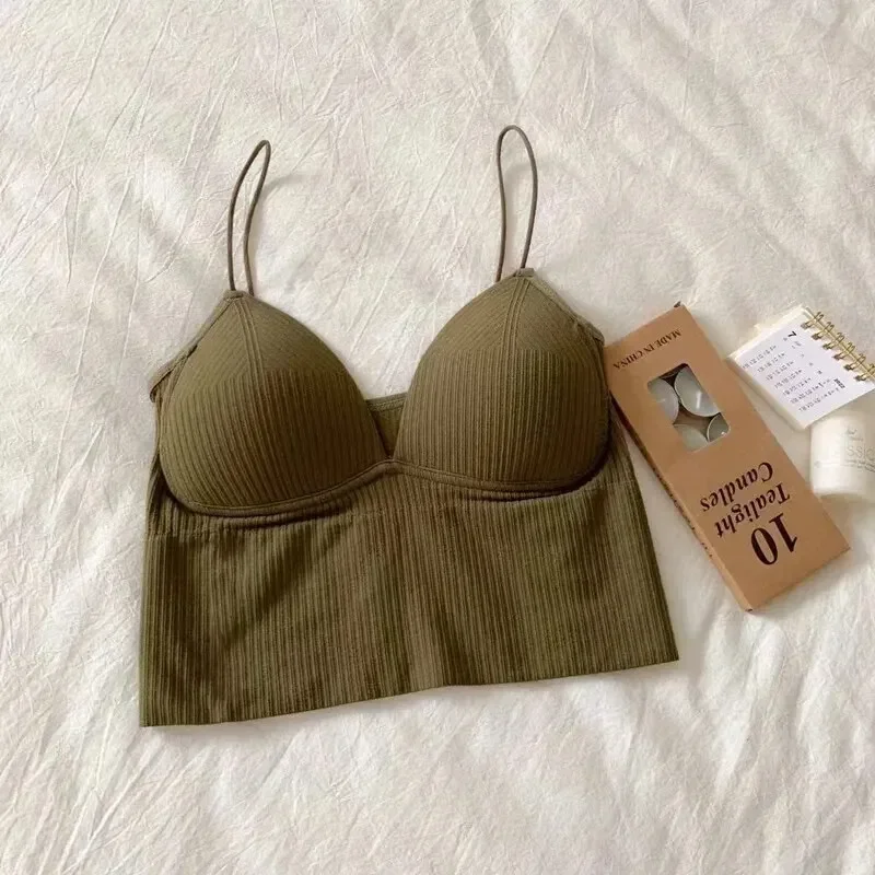 Spring and Summer New Products Small Halter Vest with One Piece Fixed Cup Chest Binding Outside Wear Soled Strapless Top