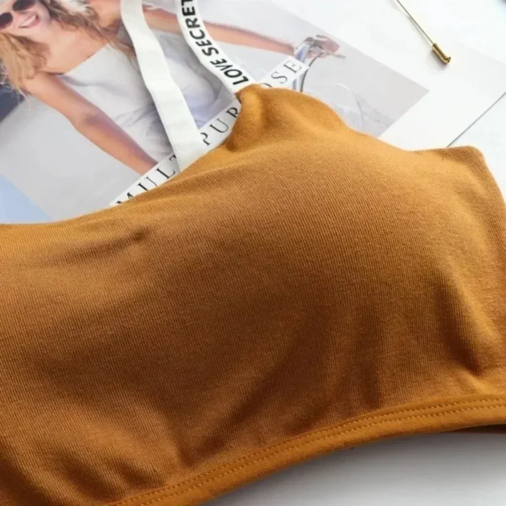 Women Bra Casual Top Letters Print Strap Cotton Top Fitness Gym Jogging Sleep Bras Wire Bandeau Paded Bra Tops Ropa De Mujer